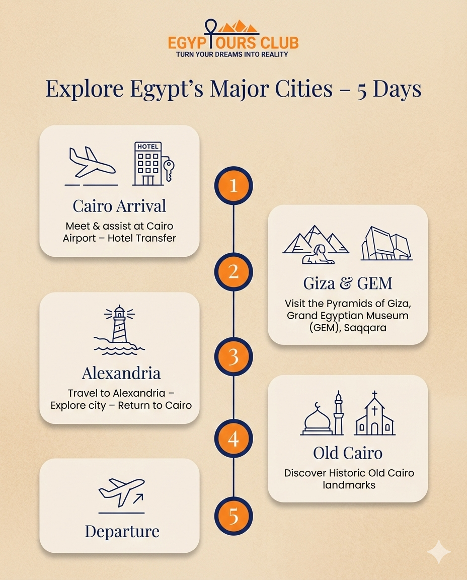 Explore Egypt's major cities in 5 days.